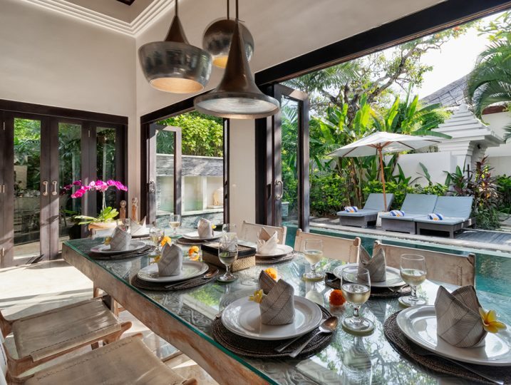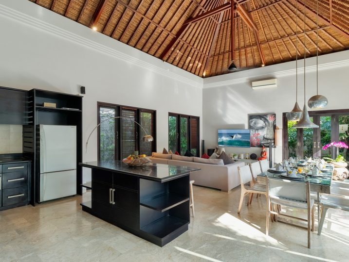 Air-conditioned rooms, dining area, cable TV, villa manager, villa staff, security, daily breakfast, housekeeping, and full access to kitchen facilities.